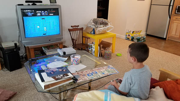 Lastly, here's a photo of Leonardo playing ZELDA on the NINTENDO 64 while at my parents' house. I love that he's playing a game that I grew up playing! My dad even still has the maps!