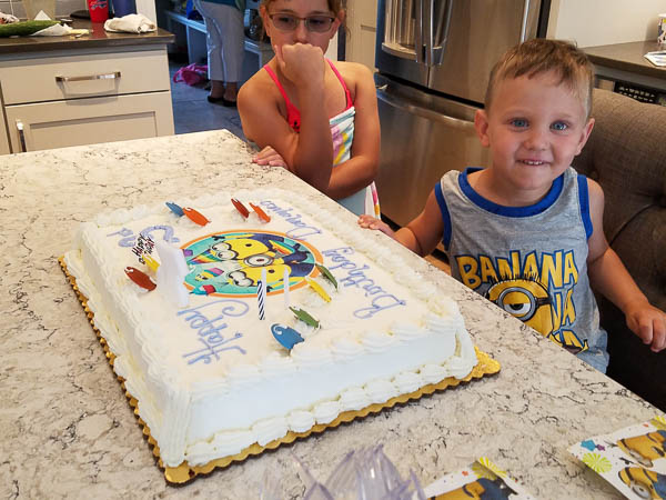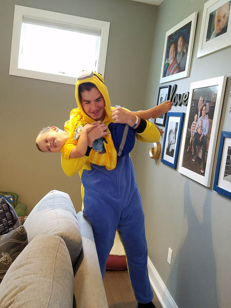 The day we drove home was Domenico's birthday party. The theme this year was Minions, and his cousin Nicholas dressed up as a Minion to surprise him.