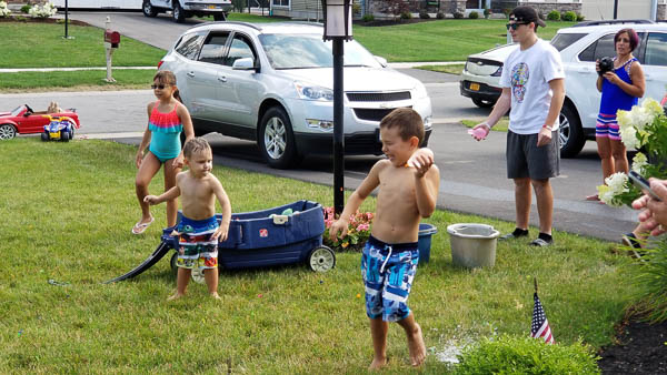 The kids had plenty of water balloons to keep them amused in the front yard.